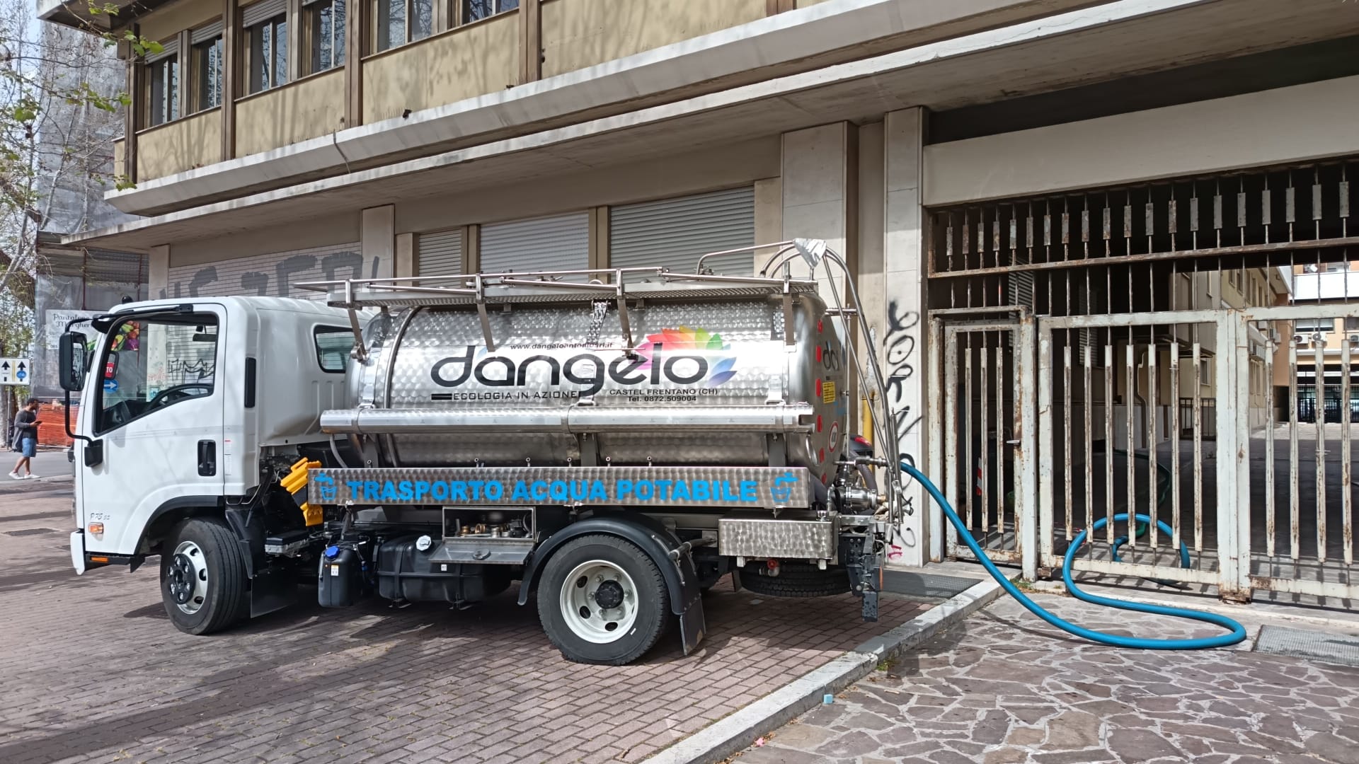 Durante le 48 ore di sospensione del servizio idrico, la D’Angelo Antonio Srl è stata incaricata di fornire assistenza attraverso l’impiego di cisterne per acqua potabile, dislocate nei punti nevralgici della città e delle aree interessate.